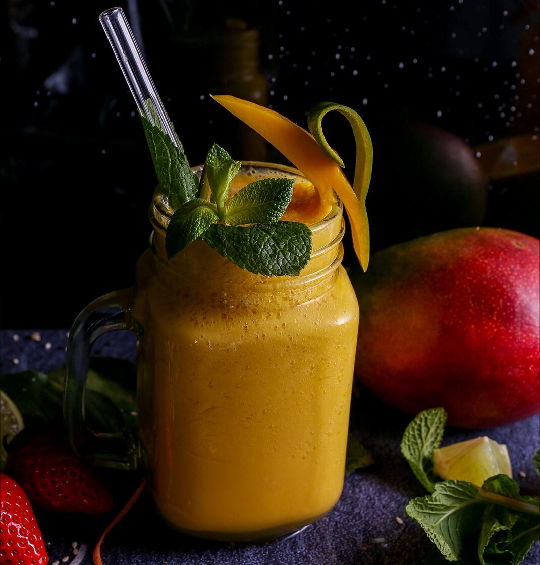Mango, Kokosmilch, Milch, Naturjoghurt, Zucker, Eiswürfel.
