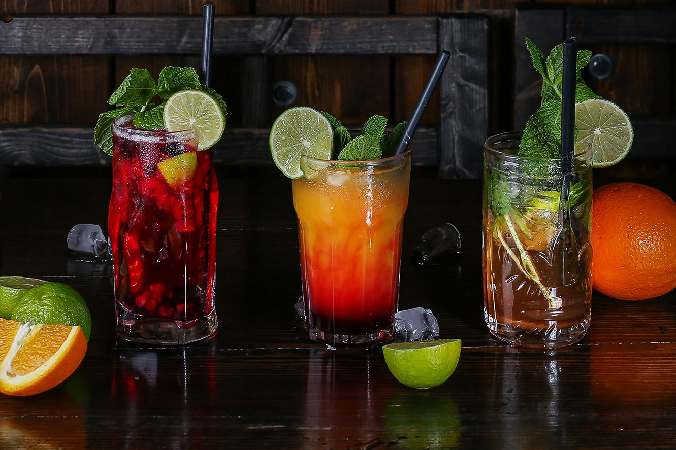 Frische Limette, Minze, weißer Rum, Zucker, Soda.